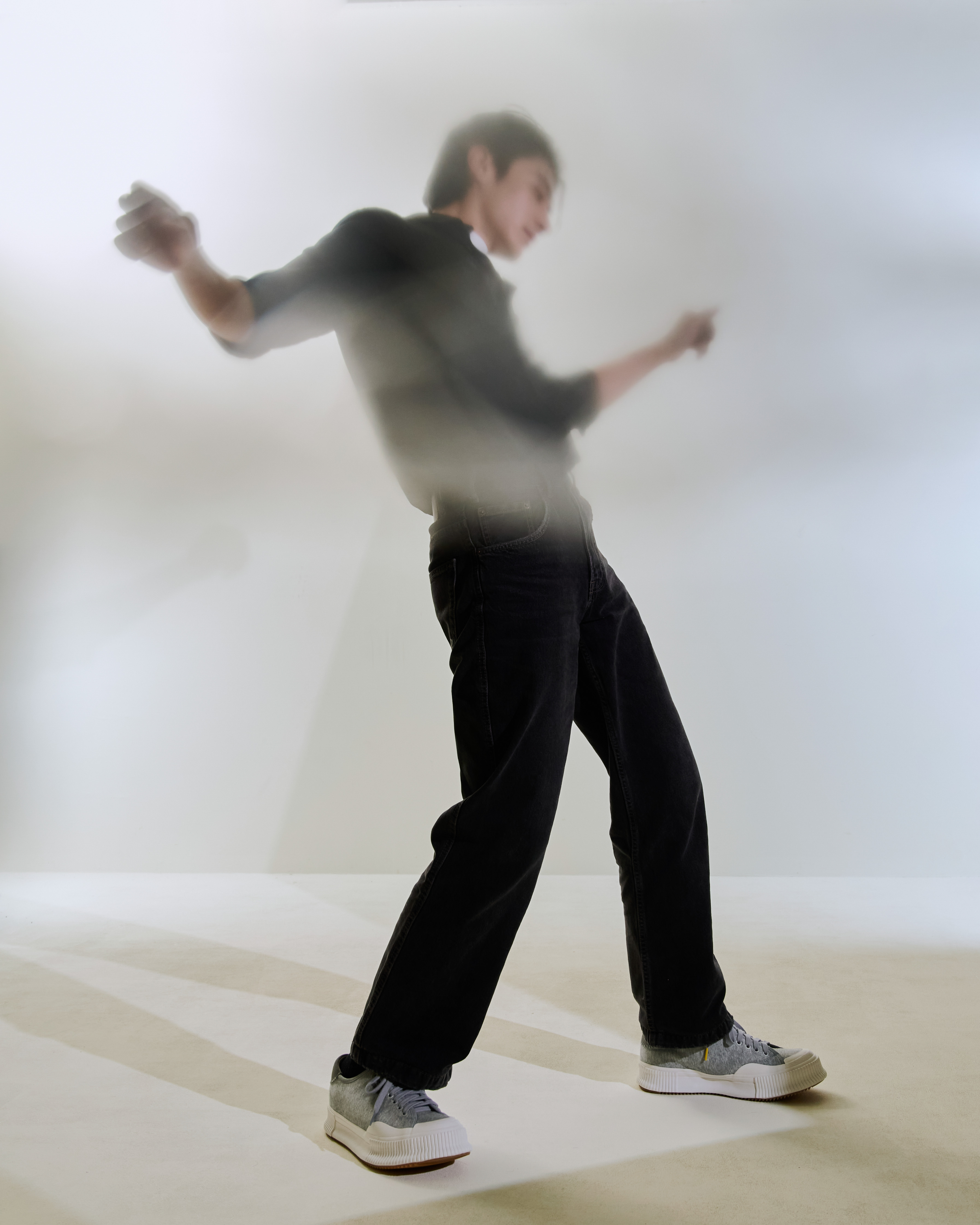 下身則以丹寧褲與ADV_S01布面休閒鞋完美呼應