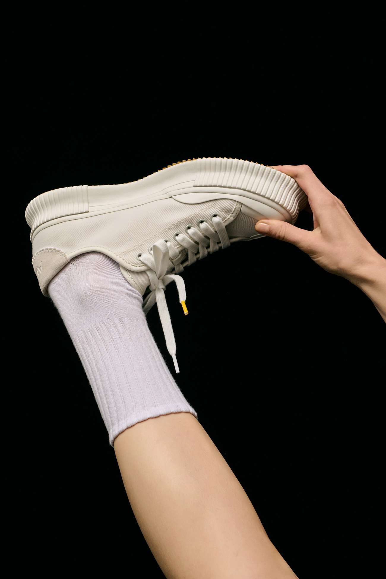 鞋帶其一收尾處特別以品牌專屬的黃色點綴