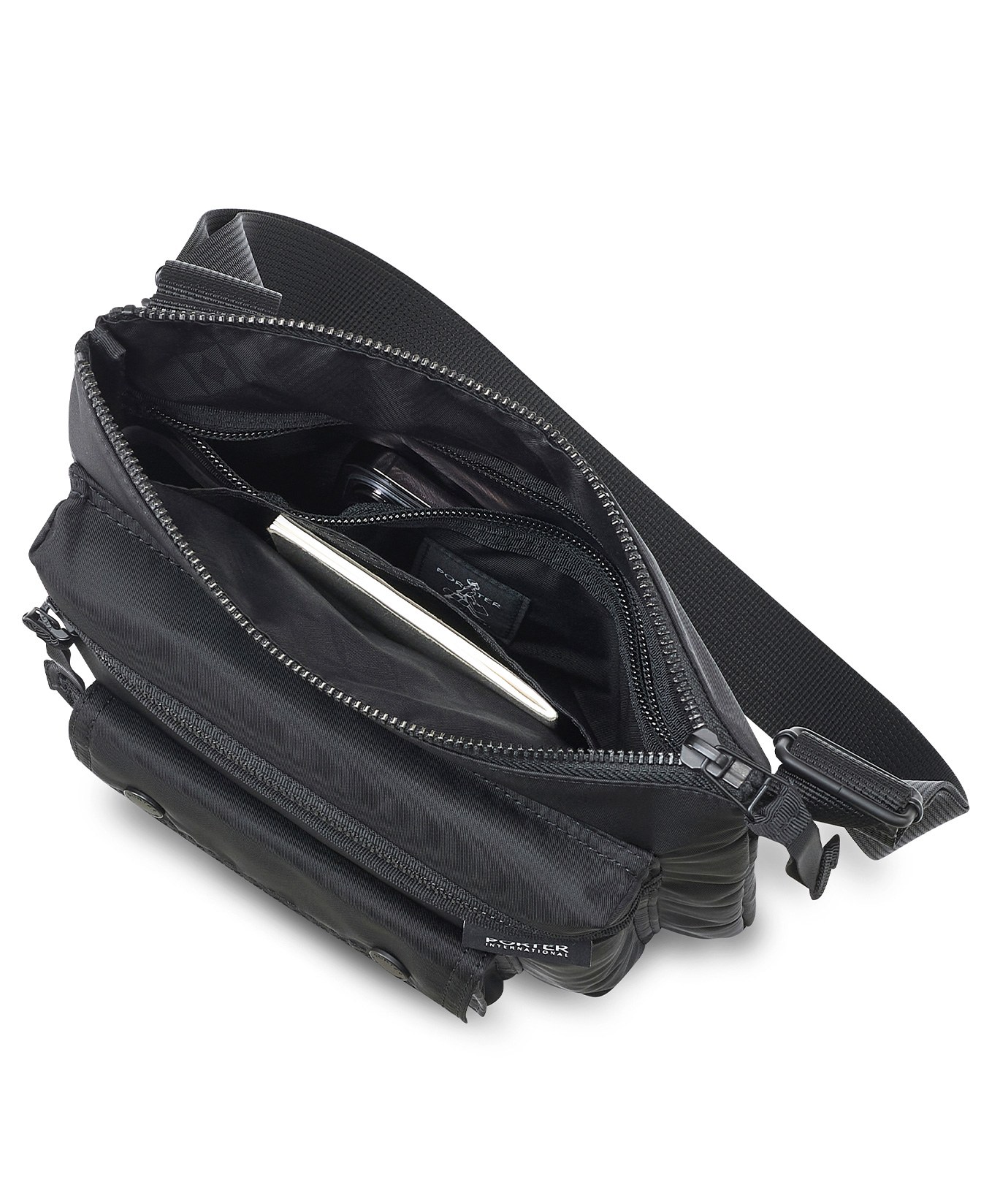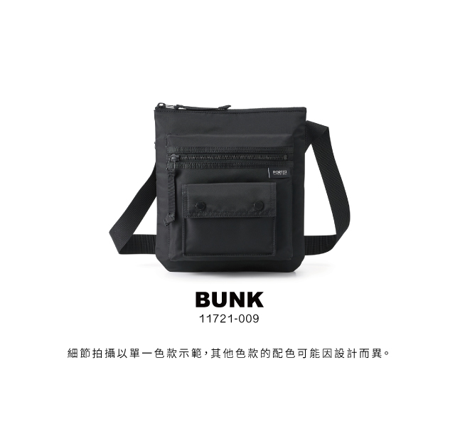 BUNK 系列採用具有光澤亮感的尼龍面料,結合經典的前附袋設計,以袋上袋的多層設計概念,和黑古銅五金相互呼應,隱約透漏一種強烈的個性感。全系列有多款大小包選擇,可以作為情侶或密友的最佳造型搭配組合。
