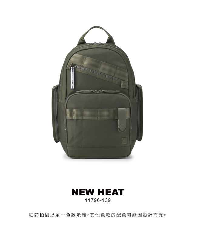 NEW HEAT 系列展現品牌「執著、自信、品味」的精神,剛柔並濟、氣度非凡,是經典中的經典。豐富的款式、多元的袋型,結合剛強面料,滿足都會男女對時尚與實用的雙重追求。