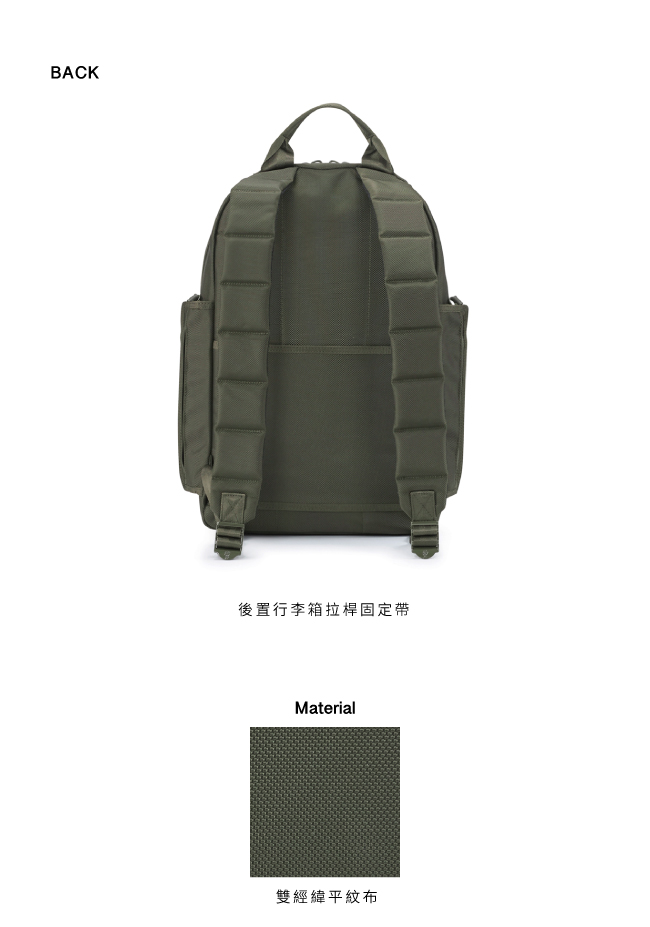 • 後置行李箱拉桿固定帶