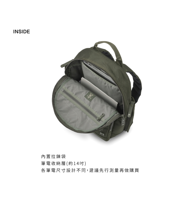 • 筆電收納層(約14吋) *各筆電尺寸設計不同,建議先行測量再做購買