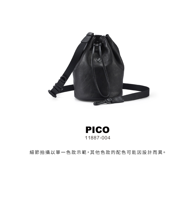 PICO系列以簡約精巧的外型與質感皮革演繹靈活日常。純黑皮革烘托自然光澤,束口設計收納有度,輕盈便攜於獨立與柔韌之間,悄然釋放專屬氣場。